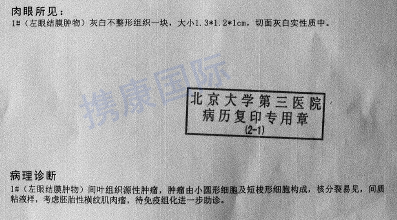 确诊病名:左眼结膜横纹肌肉瘤术后