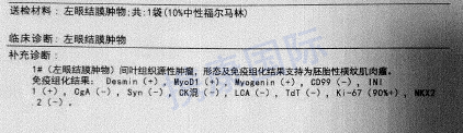 术后病理诊断为(左眼结膜)胚胎型横纹肌肉瘤。