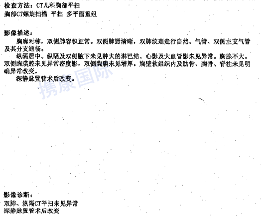 2021年2月分经术后胸部平扫CT检查示:双肺、纵膈未见异常。