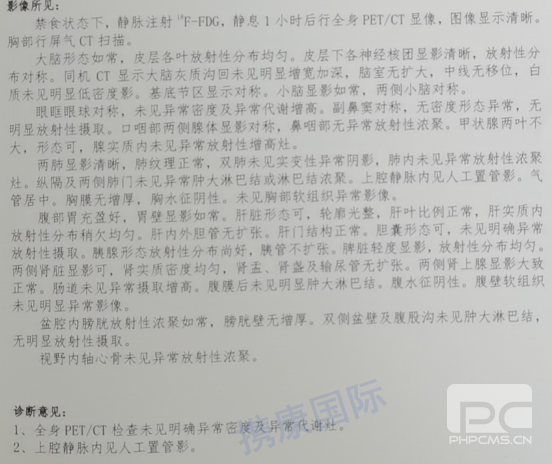 2021年3月12日经PETCT检查:未见明确异常密度及异常代谢灶 。