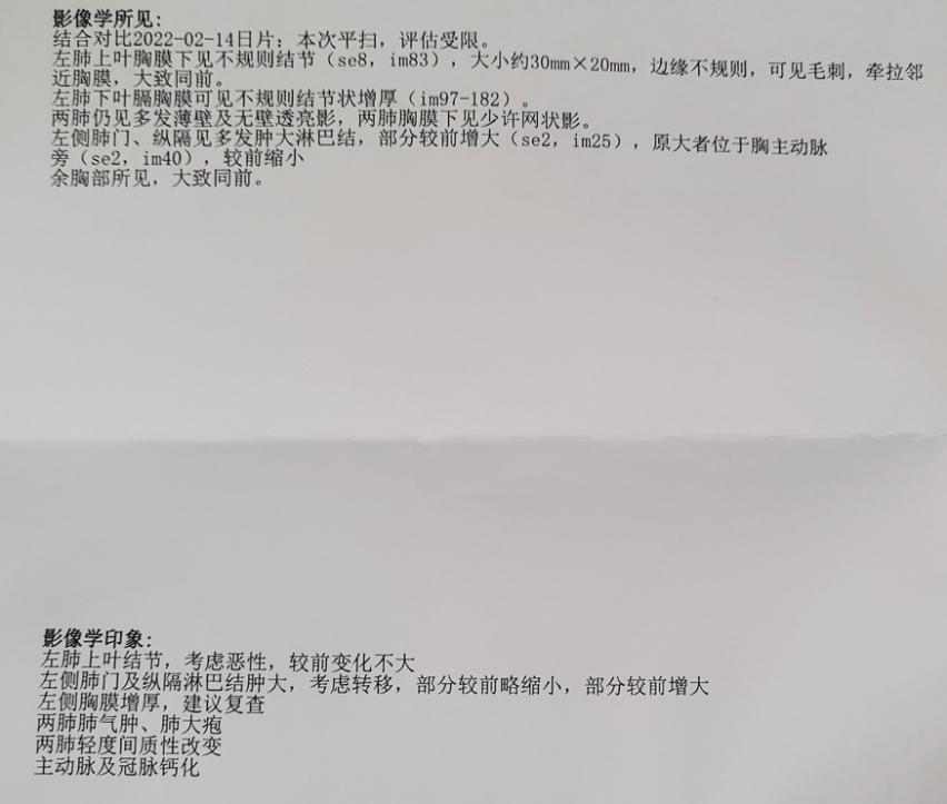 赵某某左肺恶性肿瘤化疗后日本治疗肺恶性肿瘤