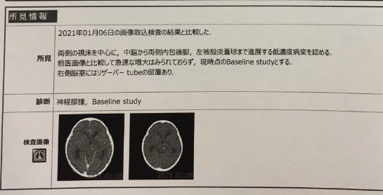 2021年01月06日:经质子治疗前,头部CT检查所见: