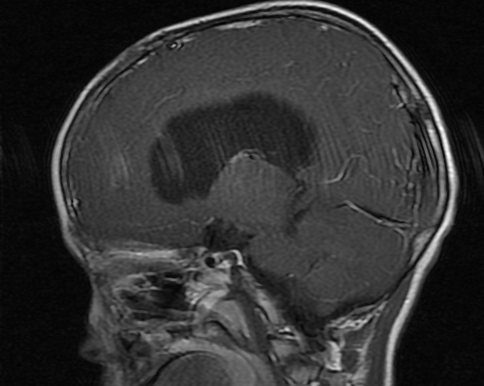 2020年08月14日:经颅脑MRI检查发现左侧桥脑、中脑、双侧丘脑、基底节区及鞍上区占位,MRS提示为肿瘤性病变,考虑弥漫中线区胶质瘤可能性大。幕上脑室积水伴脑脊液外渗。
