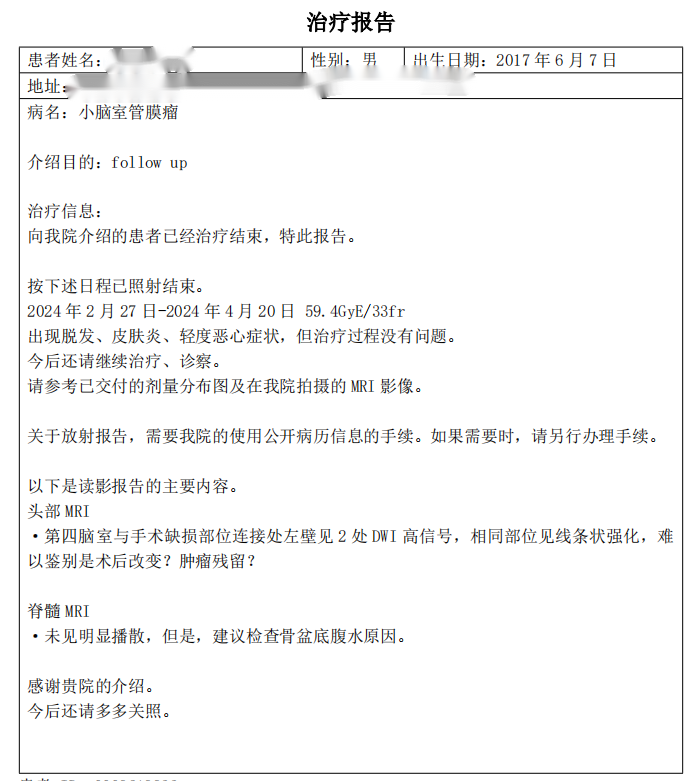 后颅窝室管膜瘤日本治疗案例【后颅窝室管膜瘤】6岁男童后