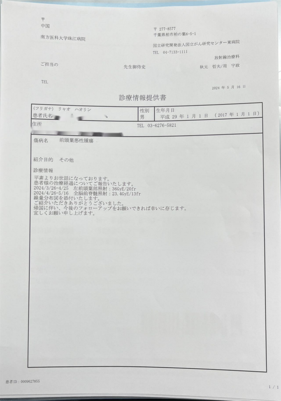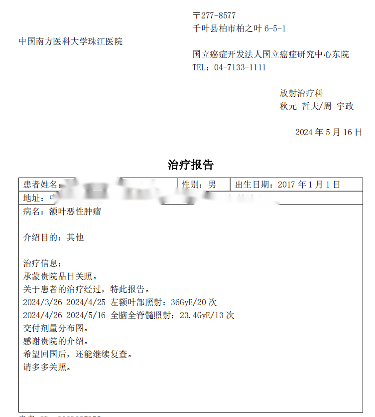 2024年2月14日经日本国立癌症研究中心东医院:秋元哲夫教授会诊回复: