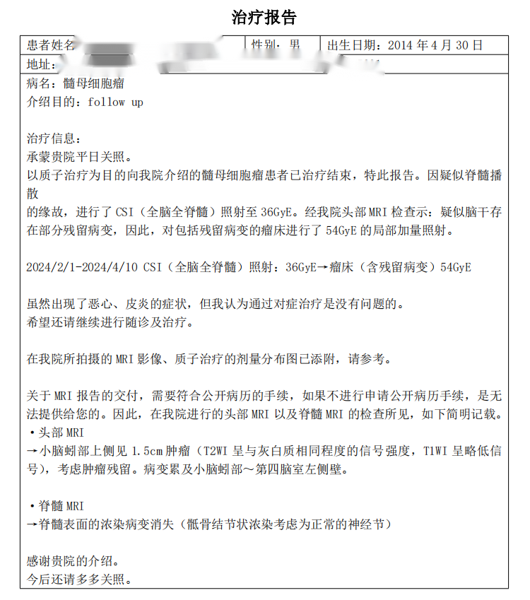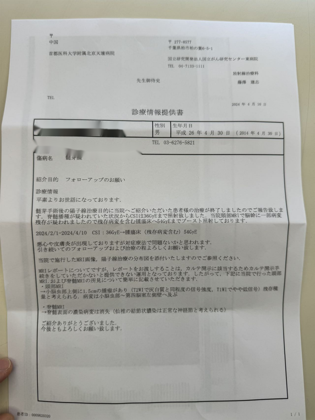 髓母细胞瘤术后案例【髓母细胞瘤】9岁髓母细胞瘤术