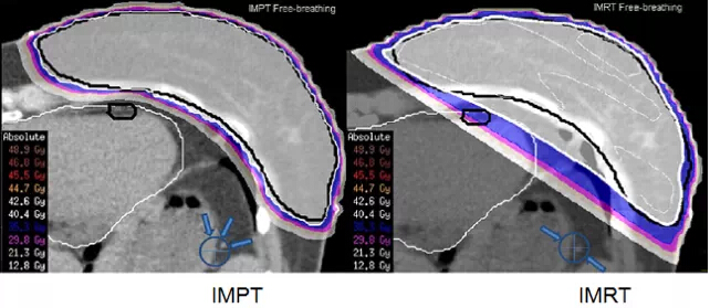 质子在乳腺癌治疗中有着明显的优势,能够降低心脏或前降动脉(LAD)剂量及心源性死亡风险,而最新的IMPT技术,让质子治疗更加如虎添翼。